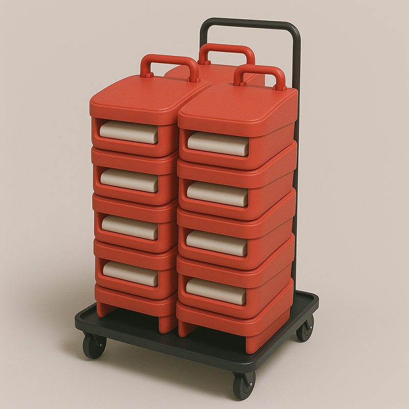 Tras décadas trabajando con equipamiento móvil para espacios escénicos, en Telones Castilla hemos diseñado un carro de transporte específico para alzadores infantiles que garantiza movilidad eficiente, orden visual y protección del producto en cualquier entorno profesional.